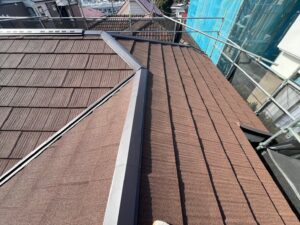 お客様のご要望は意匠性に優れた屋根材での修理でしたので、今回はディートレーディング社の「エコグラーニ」を使用いたします。エコグラーニは同社製品の中でも最軽量の金属屋根材で、住宅への負担を最小限に抑えながら優れた耐久性を発揮します。表面には自然石粒がコーティングされており、美観と機能性を両立した屋根材です。さらにメーカー最長30年保証が付いているため、長期間安心してお使いいただけます。
