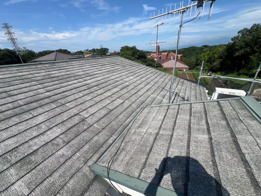 茅ヶ崎市のお客様より屋根カバー工事と雨樋交換工事のご依頼をいただきました。お客様のご要望により、工事費用を抑えるため足場をコの字型で組立てる工法を採用いたしました。